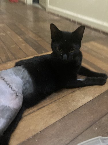 Oi, meu nome é Ana e moro numa república em Primavera, Rosana (SP). Na noite do dia 18/10, no conforto da minha casa, estava com minha amiga na sala, também moradora, e com meu gato no colo; estava andando quando a madeira do chão cedeu, pois estava apodrecida, e um buraco se abriu no chão da casa. Em nenhum momento nos foi informado do estado precário do piso da casa, e sequer feito algum reparo na vistoria da imobiliária. Eu caí e me machuquei, alguns cortes e roxos, porém o meu gatinho Joaquim teve uma queda de impacto muito grande para o tamanho de seu corpo. Ele tem 9 meses e apenas 3kg. O impacto foi gigantesco, além de uma queda de mal jeito, já que fomos pegos completamente de surpresa, e a força dessa queda fez com que, infelizmente, o fêmur de Joaquim fosse fraturado.