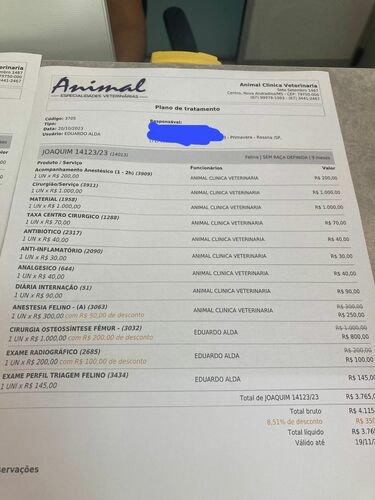 A cirurgia custava R$ 3.795, além de R$ 435 da consulta + raio-x.