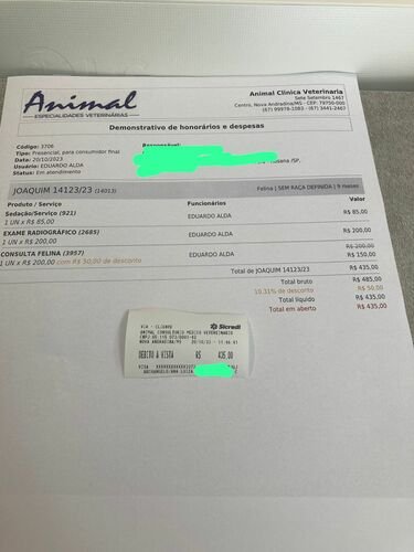 Como era uma cirurgia de emergência e nenhuma de nós 5 da república tínhamos um limite alto como R$ 3.000, não conseguiríamos pagar, nem parcelando. Tivemos que pedir dinheiro emprestado e não temos condição de pagar de volta sozinhas. São R$ 3.756, fora os demais gastos de R$ 190 (consulta e remédios), R$ 435 (consulta e raio-x), R$ 140 (gasolina) e R$ 103 (remédios pós operatório).