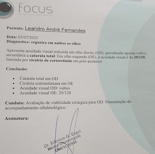 Leandro está precisando da ajuda de todos.Ele nasceu com uma cicatriz de corioretinite em olho esquerdo tendo apenas 20% de visão não enxerga com o olho esquerdo sendo um problema de nascença. E tendo adquirido Diabetes tipo 2 a visão direita foi acometida por uma catarata total sendo única solução cirurgia, catarata não e urgência como a maioria dos médicos falam mais do caso dele é a única solução para ele voltar a enxergar com a única vista que ele pode ver após a cirurgia. E por isso acaba sendo de uma urgência pois ele não está podendo trabalha e nem dirigir, e por isso estamos fazendo essa vakinha solidária para ajudar a arrecadar o valor da cirurgia para pode ser feita o quanto antes. E ficaremos gratos a todos que de qualquer forma puder ajudar.