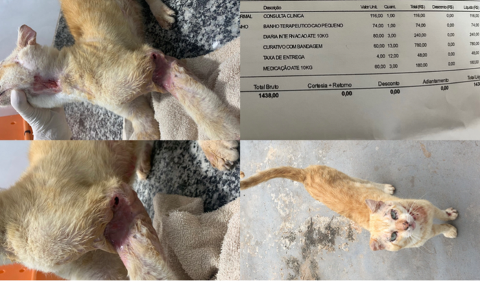 Lorde é um gatinho idoso, de rua, tem FIV e está com duas grandes feridas na pata e pescoço. Levamos no veterinário semana passada para olhar especificamente essas feridas, que estavam profundas e com bichos.