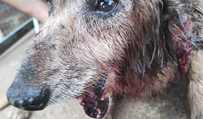 Moisés é um cão comunitário, já é velhinho, e foi atacado por um pitbull. Mas com a ajuda do link animal ( @linkanimalamparo ) está internado em atendimento.