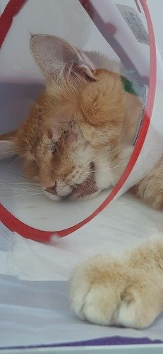 O Paçoca já fez às duas cirurgias que eram necessárias, uma no olho esquerdo e outra no maxilar, no momento ele segue em repouso e descanso ate que possa voltar para sua casa com a sua companheira do dia a dia! Doações ainda são necessárias para continuarmos custeando o tratamento e os gastos que teremos, como alimentação especial, sonda, higiene, etc. Logo que possivel teremos novas atualizações