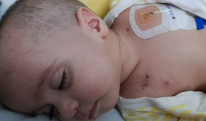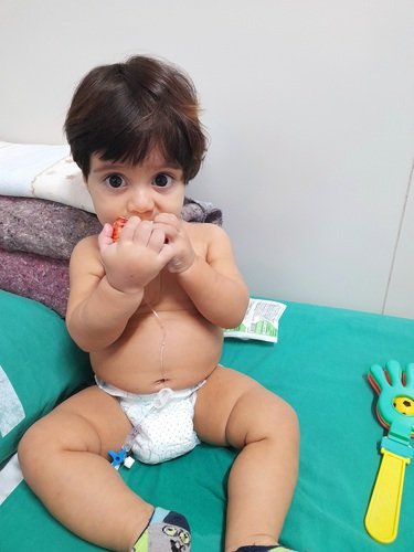 Ele é um bebê lindo, de sorriso fácil e está lutando com toda sua força pra vencer.