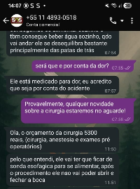 Levamos ele ao veterinário, e o Pingo precisará ficar internado para realizar uma cirurgia na boca (maxilar que foi quebrado) e receber medicação.