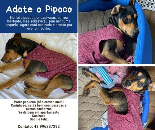 Olá, o pipoco é um cachorro de rua, que foi atacado por capivaras, tendo 10 cortes fundos nas costas. Encontramos ele 1 semana depois dos ataques, tremendo de fome e dor. Conseguimos pegar ele e levar pro hospital veterinário, Santa Vida Estreito, onde ele precisou ficar internado, com antibiotico na veia, pois nao podiam suturar a ferida infeccionada. Depois disso, ele levou os pontos e esta em casa se recuperando super bem. Já foi castrado também.É dócil, de pequeno porte, 10kg, muito brincalhão e carinhoso e estamos fazendo lar temporário até ele encontrar uma familia.Os gastos no veterinário foram cerca de 3 mil reais e isso foi um gasto totalmente imprevisto que fugiu do orçamento, por isso a vaquinha. Não vou colocar foto das feridas aqui por ser sensível, mas qualquer pessoa que quiser ver pra comprovar, é só me pedir e eu mando inbox.