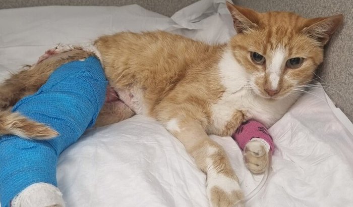 Para que ele tivesse uma chance real de recuperação, foi necessária a transferência para um hospital veterinário, onde está recebendo cuidados intensivos e precisará passar por cirurgia para salvar a patinha e evitar mais sofrimento.
