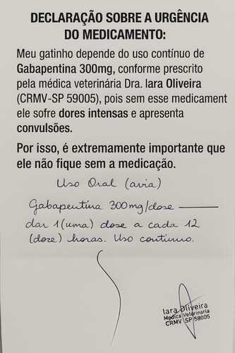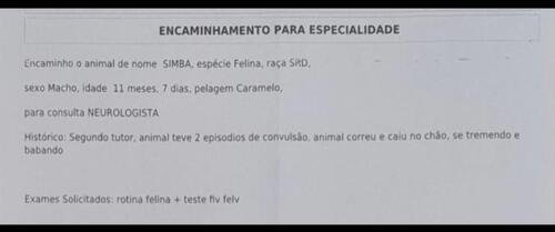 O Simba foi resgatado das ruas ainda filhote. Desde então, virou parte da família e é tratado com todo amor e cuidado do mundo.Em 2021, quando ainda era muito novinho, teve sua primeira convulsão. A partir daí começou uma longa luta para entender o que ele tinha e como aliviar seu sofrimento.O primeiro tratamento foi com Gardenal, indicado pelo veterinário, e depois veio o encaminhamento para o neurologista. Mesmo com o remédio, as crises continuaram e ele sofria muito.Foram vários exames até descobrirmos que o Simba tem uma má formação na coluna, o que causa dores muito fortes e provavelmente era essa dor que desencadeava as convulsões.Foi só depois de começar a tomar gabapentina que as crises pararam. Esse remédio mudou completamente a qualidade de vida dele.Mas manter esse cuidado não é fácil… A gabapentina custa R$ 55 e dura apenas 15 dias. Além disso, como ele tem imunidade baixa, precisa de suplementos, alimentação reforçada e atenção constante.Nos últimos tempos, passamos por dificuldades financeiras, e infelizmente, os custos com tratamento e cuidados ficaram pesados demais. Mesmo com muita gente ajudando com compartilhamentos nas redes (@meusimbalaranja no TikTok e @meusimbaeluke no Instagram), nem sempre conseguimos o apoio necessário.