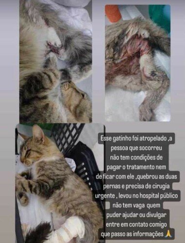 Pessoal, dia 21-03-2023 uma amiga resgatou o Simba, ele foi atropelado e abandonado, sem prestarem socorro, foi resgatado e levado para R. Ulisses Cruz, 285 - Tatuapé, no Vet Popular, após muito tempo de espera a Veterinária disse que ele estava com as duas patinhas quebradas, e precisaria de cirurgia e colocação de placa em uma das patinhas, além do quadro de anemia decorrente do abandono, estamos aguardando a cirurgia porém o Vet Popular não tem leito de internação no momento, e a placa que tem que ser colocada em uma das patinhas não tem para o seu tamanho, infelizmente o Simba aguarda em casa a liberação da cirurgia. Venho por meio dessa Vakinha pedir a ajuda de todos para que o Simba consiga fazer a cirurgia logo e se recuperar, para que futuramente a gente consiga encontrar um lar para ele. Muito obrigada à todos pela colaboração.