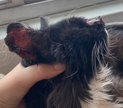 Nós resgatamos o Teixeira da rua em 2020, e alguns meses depois descobrimos a esporotricose. Ele já foi assim: