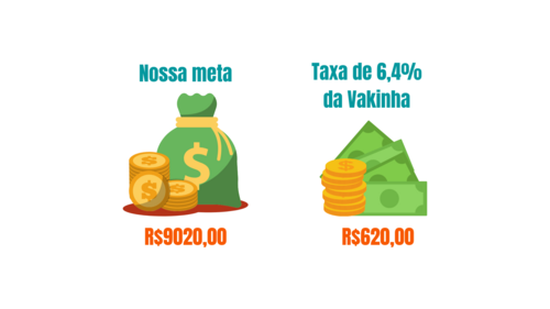 O valor da nossa meta é baseado no valor de inscrição do time para participação online (US$2.500), além dos gastos previstos com a confecção das recompensas e a taxa de 6,4% cobrado pelo site da Vakinha.