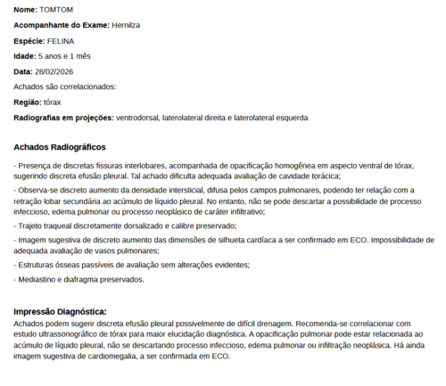Fora isso sempre foi um gato saudável. Não sabemos a sua idade exata, mas desconfiamos que tenha de 6-7 anos, pois já extraiu três dentes.Apesar de levar uma vida saudável, descobrimos uma efusão pleural (líquido no pulmão) por via de ultrassonografia.