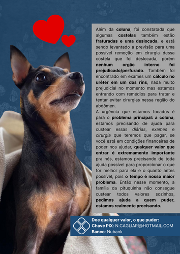 AVISO LEGAL: O texto e as imagens incluídos nessa página são de única e exclusiva responsabilidade do criador da vaquinha e não representam a opinião ou endosso da plataforma Vakinha.