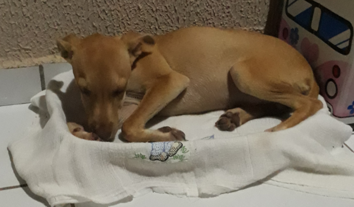 Resgatamos esse filhote de cachorro que estava na rua e perdido. Lembrou muito o nosso cachorrinho anterior que era grande e saudável, um caramelo legítimo que foi envenenado por pessoas ruins e por isso adotamos esse para amenizar a nossa dor de ter perdido o outro amigo caramelo. Foi um sinal de Deus que colocou ele no nosso caminho e a gente quer cuidar dele como cuidamos muito bem do outro caramelo Beethoven.