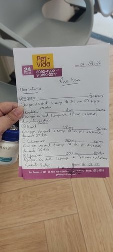 Sente muita dor e necessita de uma alimentação especiais e uma receita de medicamentos de alto custo e uns exames adicionais do tal qual não tive condições de arcar nesse momento.