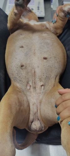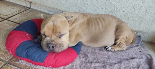 Ela tinha um dono que veio a falecer , porém foi adotada super saudável e bem cuidada, o adotante ficou com ela cerca de 2 meses e deixou ela chegar nesse estágio e desovou ela na porta de quem auxiliou na adoção .