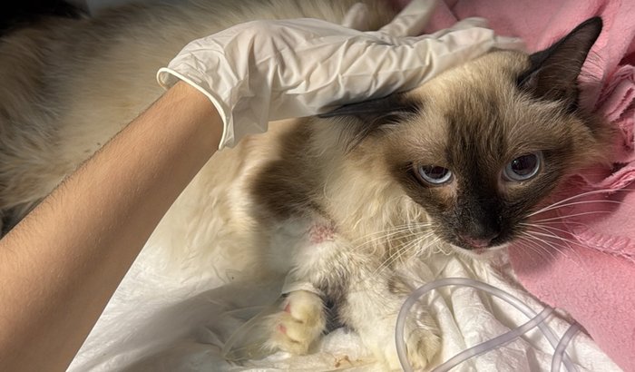 Essa é Sofia, uma gatinha de 11 anos, extremamente carinhosa e muito amada, que está enfrentando uma batalha difícil contra a esporotricose.