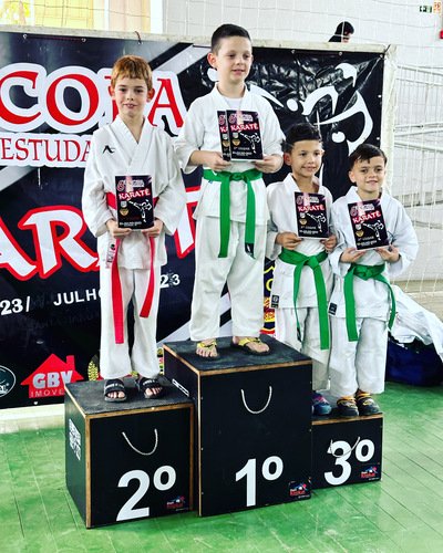 Minha primeira competição foi o Campeonato Estadual de Karatê em 23 de abril de 2023 em SM/RS no qual após 4 lutas e duas lesões obtive um ótimo desempenho conquistando o segundo lugar.