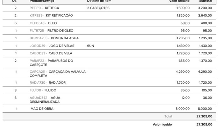 Infelizmente, após apenas 4 meses, o carro começou a apresentar sérios problemas mecânicos. Como a garantia da loja já havia terminado, levamos ao mecânico por conta própria e recebemos um orçamento com diversos problemas graves, como cabeçote, carcaça de válvula, entre outros — um valor totalmente fora da nossa realidade financeira.