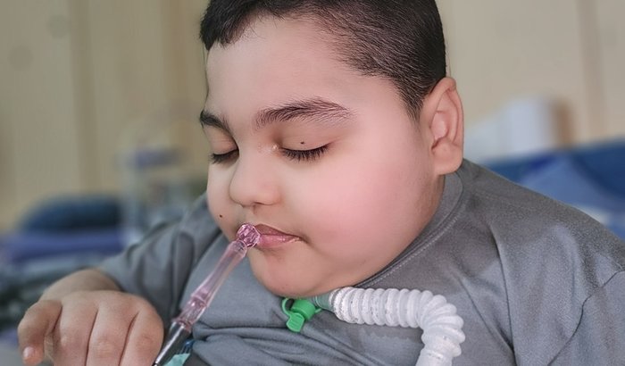 No momento, está em uso de dieta via gastrostomia plena e em uso de ventilação mecânica na traqueostomia. Ele aguarda o recebimento de respirador domiciliar para voltar para casa com sua mãe.
