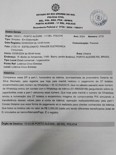 Meu nome é Kelly, trabalho em uma lotérica, localizada no bairro Petrópolis, na cidade de Porto Alegre, RS. No início desse mês, minha colega acabou caindo em um golpe, o Golpe do PEC, conhecido no mundo lotérico. Golpe esse que se resume em criminosos criando WhatsApp falsos, se passando pelo proprietário da Lotérica e solicitando que a funcionária realize pagamentos de boletos de valores expressivos, dos quais os mesmos não tem como fazer o cancelamento. Infelizmente minha colega Luciana acabou sendo vítima desses criminosos, sofrendo um desfalque em seu caixa no valor total de $55.000,00. Ela está muito abalada e desestabilizada, então resolvi criar essa vaquinha para que possamos tentar amenizar os prejuízos que a mesma sofreu, pois ela não tem condições de cobrir todo esse valor.