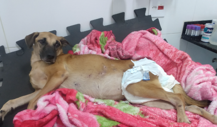A história dela não é das melhores. O dono foi embora e não a levou. Ela ficou pela rua, foi atropelada e resgatada por um anjo chamado Neide. A Neide é uma amiga de longa data, logo me prontifiquei para ajudá- la.