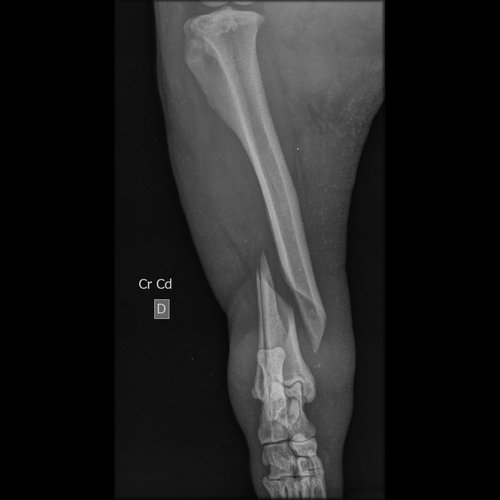 Oi, eu sou a Maria Eduarda, estudante de medicina veterinária e hoje chegou na clínica que eu estou estagiando, um cachorro de rua atropelado, com fratura em femur e tibia e doença do carrapato.