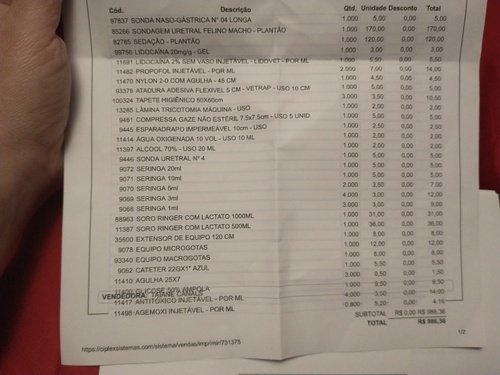Cada diária é 300,00 fora os gastos com remédios.