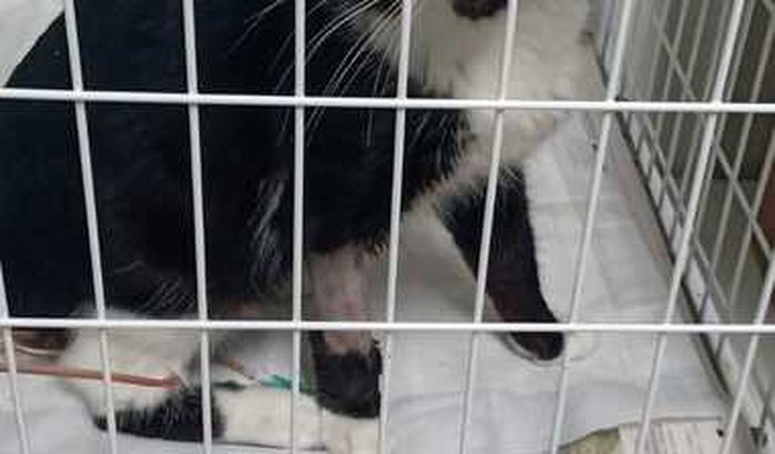 Ele está com problemas renais, precisava de tratamento urgente, está internado na clínica Porto Vet em Porto Alegre.