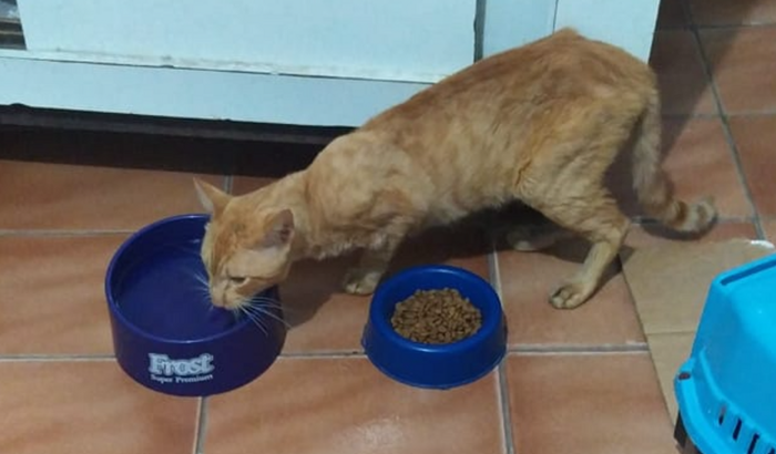 Eu e minha mãe resgatamos esse gatinho, que estava preso pro uma corda no poste. O pobrezinho sofreu muitos maltratos, e estava a beira de morrer.