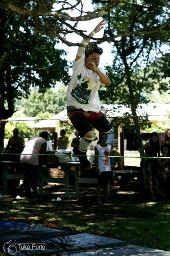 Olá, me chamo Ênio La Torre, e aos 11 anos, tive a sorte de conhecer o Slackline quando frequentava o projeto social Interagir, aqui no Rio Grande do Sul.