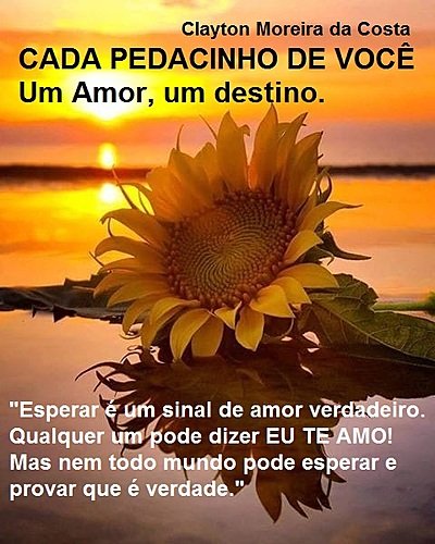 Faça sua doação e compartilhe o comprovante para o endereço de e-mail claymiraflor@yahoo.com e receba um E-book Digital CADA PEDACINHO DE VOCÊ Um amor, um destino em seu endereço de E-mail ou WhatsApp.