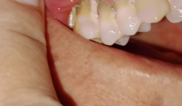 Os medicos disseram que se não desinchase e não fizesse o tratamento afetaria ainda mais os meus dentes. Infelizmente, eu não consegui cuidar, e ao longo dos anos venho perdendo meus dentes e sofrendo de dores terríveis.