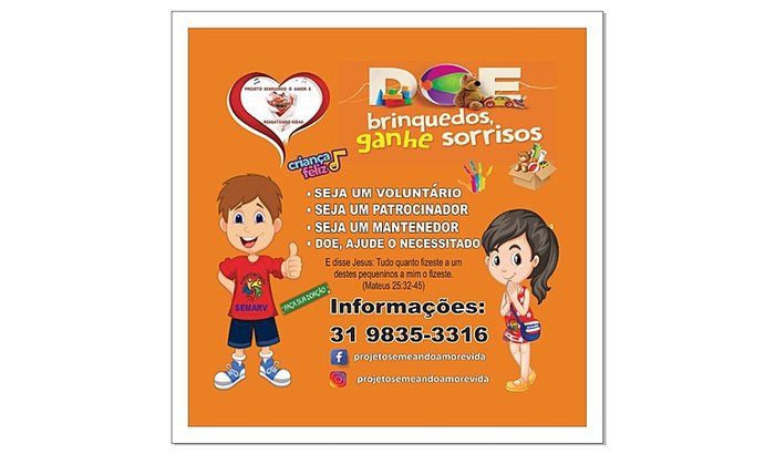 O SEMARV - Semeando Amor Resgatando Vidas é uma instituição sem fins lucrativos que há 9 anos com muitas dificuldades vem ajudando crianças, adolescentes, jovens e suas famílias, mães solteiras e em situação de vulnerabilidade. A bíblia diz que "tudo quanto te vier as mãos para fazer, faze-o conforme as tuas forças...". E temos feito de tudo para ajudar o máximo de famílias que tem nos procurado pedindo socorro, e já atendemos mais de mil famílias em situação de extrema necessidade. Neste ano o projeto Semarv irá completar 10 anos que vem atendendo famílias e moradores de rua em situação de vulnerabilidade social. E queremos reunir nesta Festa de aniversário do Semarv, crianças e suas famílias traz3ndo alegria e fortalecendo os vínculos familiares. Para isso contamos muito com a sua contribuição, pois ela fará uma grande diferença nos ajudando a realizar esta FESTA DAS CRIANÇAS neste aniversário de 10 anos do PROJETO SEMARV, onde atendemos em torno de 300 crianças e adolescentes. O valor arrecadado nos ajudará na compra dos brinquedos, na alimentação e no aluguel de pula pula, cama elástica, piscina de bolinha e algodão doce. Conheça nosso trabalho seja um Doador desta grande obra, qualquer valor é muito bem-vindo. Visite o nosso instagram @projetosemarv.