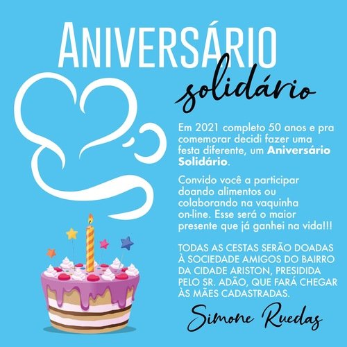 Campanha de arrecadação para compor cestas básicas para doar à Sociedade Amigos do Bairro da Cidade Ariston.