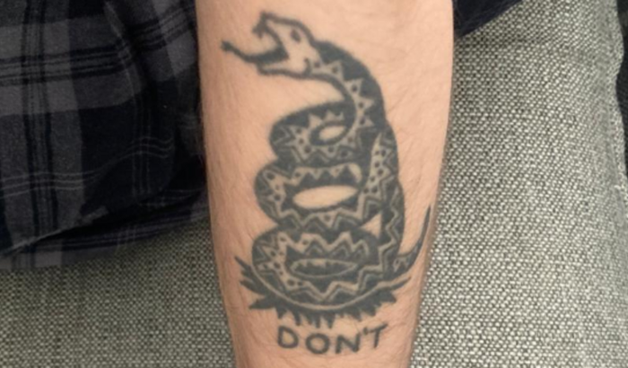 Venho aqui contar a trágica historia desta tatuagem. Em 2016 no auge dos meus 18 anos, fiz uma tatuagem da minha banda favorita que se chama metallica. Um ano depois, não satisfeito com os resultados, encontrei uma imagem da Gadsden flag, e após uma breve pesquisa, achei que não teria nada de mais e resolvi fazer igual. Um tempo depois acabei descobrindo que é uma bandeira usada pela extrema direita, grupos pro-armamento, etc. Essa tatuagem me causa extrema dor emocional, ja pensei em tirar minha vida diversas vezes por causa dela, as pessoas me olham feio na rua e sou frequentemente insultado. Consegui fazer algumas sessões de laser ano passado porém agora passo por dificuldades financeiras pois trabalho e estudo, e o tratamento é bem caro. Se você se solidariza, qualquer valor sera bem vindo. Obrigado.