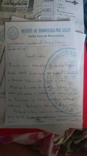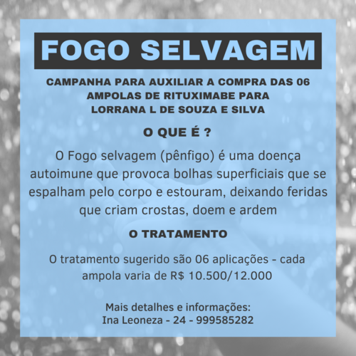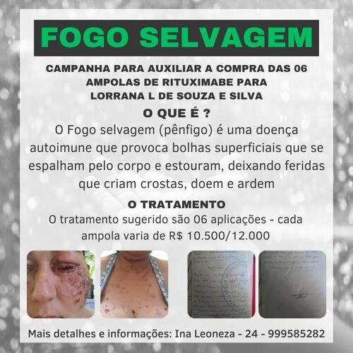 Somos familares da paciente que esta aguardando o tramite legal para o tratamento de Pênfigo - o valor total do tratamento é de R$ 75.000,00 para observar como o organismo reage. Nesses ultimos meses a quadro tem se agravado e estamos buscando ajuda de todas as formas e meios possiveis. Abaixo algumas fotos :