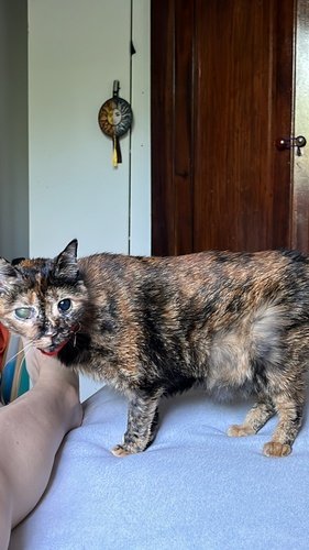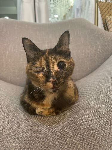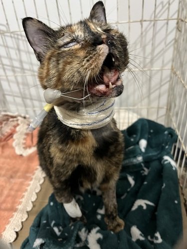 Hi everyone! Valen was found run over on December 20, 2024, with her life doomed. She had an owner, because she was chubby, spayed and elderly, but we searched and never found her family. She was taken care of by the @aliancacats project. Valentina had several fractures on her face and jaw, lung contusion, eventration, pelvic fracture, and acute blindness due to head trauma. She had to undergo several surgeries, including the placement of an external fixator on her jaw. They also had to have an esophageal tube inserted for her to feed her, since she could not move her mouth for a while, until the fractures healed. She had a resistant infection, it was very difficult to control her infection. But she was strong and endured everything. After 2 months with a tube, she was able to start feeding herself. She relearned how to meow, use the litter box, and lick herself. She also adapted to being blind. She developed dry eye and glaucoma in one of her eyes, due to the nerve damage in the accident, so we continue to treat her eye and she may need another surgery. Her vet bill is very high. She spent more than 10 days in the hospital, underwent 4 surgeries, x-rays, blood tests, FIV and Felv tests, many recovery sessions, etc. That's why I started the fundraiser, so we can pay off her debts and continue to take care of Valen in the best way possible, because she really wants to live.