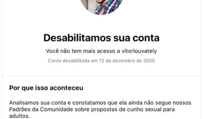 Para piorar ainda mais a situação, no dia 12 de dezembro, meu Instagram foi derrubado. Essa é a minha principal fonte de renda, já que sou empreendedor digital e influenciador. Além da queda da conta, várias outras foram denunciadas, o que resultou no cancelamento de contratos, trabalhos em andamento e parcerias, gerando um prejuízo estimado de cerca de R$ 30.000.
