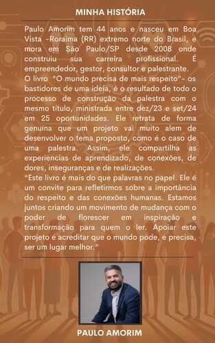 Este livro é mais do que palavras no papel. Ele é um convite para refletirmos sobre a importância do respeito e das conexões humanas. Com seu apoio, não estamos apenas publicando um livro; estamos juntos criando um movimento de mudança. Cada contribuição é uma semente plantada em solo fértil, com o poder de florescer em inspiração e transformação para quem o ler. Apoiar este projeto é acreditar que o mundo pode, e precisa, ser um lugar melhor.”