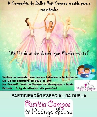 Amigos do Ballet.Como vocês sabem nossa companhia de Ballet tem uma media de 40 crianças e adolescentes que não podem pagar pelas aulas e todo custo é comigo. Eu faço rifas, bazar, vendo bonecas em feltro, tudo pra manter a realização desses sonhos de crianças e adolescentes.Estamos finalizando as atividades deste ano e temos programada nossa apresentação de final de ano para dia 8 de dezembro de 2022 as 19h na Fundação Vovó do mangue em Maragogipe- Bahia.Mas nesse momento estamos precisando de apoio para que eu possa confeccionar as roupas de apresentação, refazer algumas, aluguel do espaço do evento e ornamentação. Tudo isso eu conseguir enxugar do enxugar por R$ 2.000 mais algumas taxas….totalizando R$ 2.200,00.Preciso passar o chapeu nesse momento para arrecadar dinheiro e fazer nossa apresentação acontecer.Quem puder nos ajudar segue o link da vaquinha, nossos contatos e tambem nossa pagina no Instagram que comprovam nossas açoes.Contato celular e também PIX 71 98882 0428Rutileia Campos
