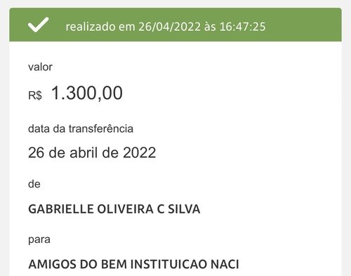 E acabamos conseguindo ajudar outras duas instituicoes! Abaixo coloco os comprovantes: