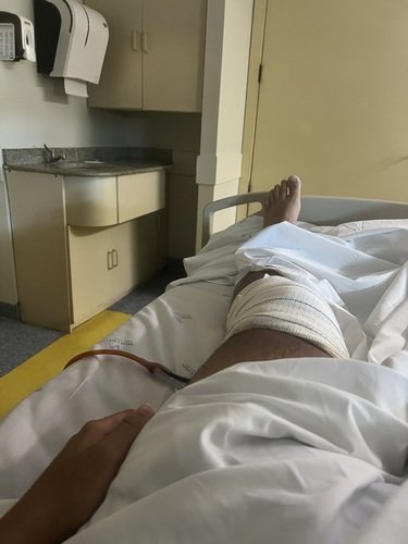 no dia 26/12 00:30 acabei me acidentando, minha moto acabou colidindo no poste, fui para o cristo somente uns machucado, com o tempo meu joelho não desinchava, no dia 10/01 internei no hospital becker em gravataí, com infecção no joelho, dia 13/01 17:45 entrei para o bloco para fazer cirurgia, cirurgia concluída 100%, somente recuperação e fisioterapia