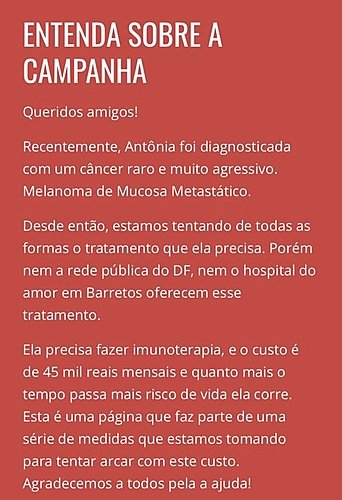 AVISO LEGAL: O texto e as imagens incluídos nessa página são de única e exclusiva responsabilidade do criador da vaquinha e não representam a opinião ou endosso da plataforma Vakinha.