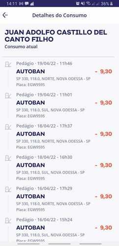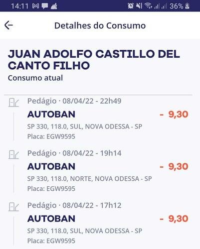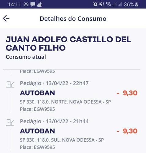 (Comprovantes de pagamento de pedágio apenas deste mês - abril/2022 - para troca de acompanhantes e entrega de documentos para o hospital)