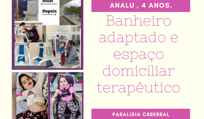 Esta vakinha tem como objetivo de custear as adaptações residenciais. Analu tem 4 anos, teve paralisia cerebral é cadeirante. E com a pandemia tem ficado ociosa regredindo , ela é do grupo de risco e só está saindo pra fazer terapias. Como está crescendo é cadeirante precisa de um banheiro adaptado , e um canto para realizar terapias domiciliares, pois a casa é extensão dos tratamentos. Ela ainda não anda, não tem sustentação do pescoço, não fala, não senta sò, toma várias medicação para crises convulsivas e tem dificuldade de deglutição, usa sonda de gastrostomia pra se alimentar. Precisamos manter as terapias diárias de fisio, fono e terapeuta ocupacional para que o quadro dela não se agrave e de lesões ou atrofie os músculos. Necessita de vários acessórios e equipamentos ( colete terapêutico, órteses, parapodium , adaptação em casa e outros.. ) e são coisas que não podem esperar e sozinhos não temos condições.