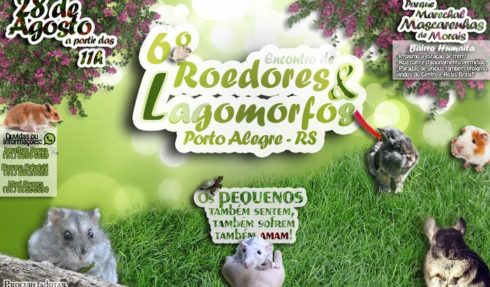 Então galera, como a tempos viemos combinando, agora vamos de vez fazer nosso banner, pra poder expor em todos os encontros, um banner único, sem data, apenas com os dizeres "Encontro de Roedores & Lagomorfos Porto Alegre - RS", deixe sua contribuição...