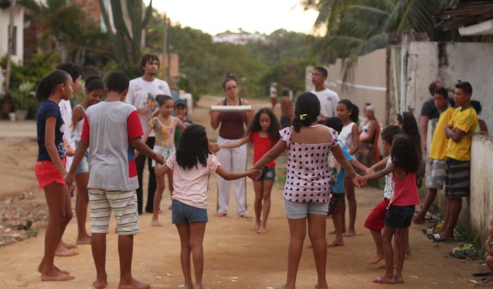 O projeto “Comunidade Azul” objetiva valorizar o lugar onde moramos através de atividades em grupo como o ensino da capoeira, do coco de roda, do teatro, entre outros, e da criação de atividades que implementem a reflexão sobre qualidade de vida, distribuição de políticas de educação, saúde, moradia, o acesso a lazer e ao contato com a natureza. São aulas voluntárias ofertadas a crianças que moram aqui conosco. Atualmente as aula tem sido ofertadas semanalmente pelo instrutor Daniel Ginga e por Juliana Barretto, mas sempre contamos com o auxílio de parceiros do projeto que se chegam pra dar aquela forcinha.