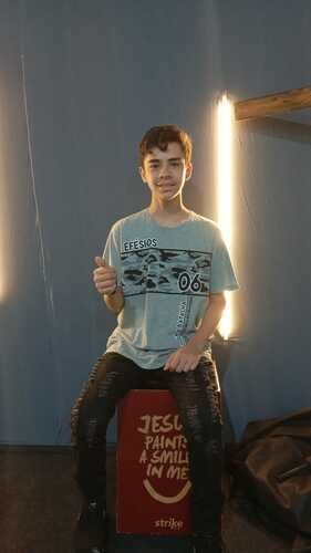 Esse é o nosso baterista (Vinícius), hoje usamos um Cajon emprestado por um amigo.