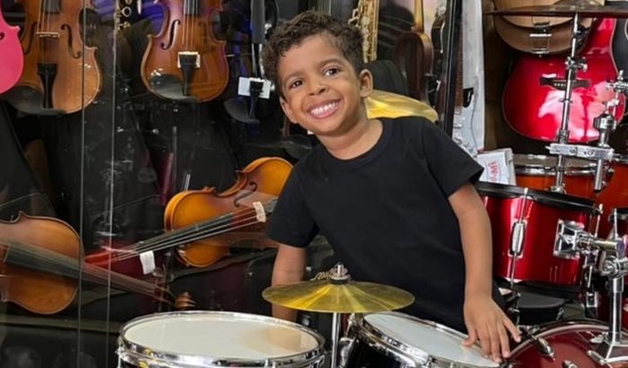 Agora, perto de completar 4 anos, ele tem um grande sonho: tocar bateria 🥁